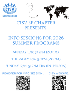 We will be hosting an information session over Zoom to explain what CISV is all about, the amazing experiential learning that occurs, and how you can apply. Register with the QR code below.